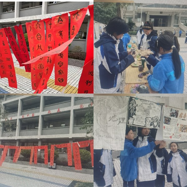 展覽現(xiàn)場,手工制作類作業(yè)尤為引人注目。同學(xué)們精心制作的仿青銅器,從造型到紋理都栩栩如生,展現(xiàn)了對歷史文化的濃厚興趣和深入理解;地理等高線模型、地球儀以及地形地貌模型,不僅精確還原了地理知識中的各種形態(tài),還體現(xiàn)了學(xué)生們的空間思維和動(dòng)手能力。甲骨文春聯(lián)別出心裁,將古老的文字與傳統(tǒng)節(jié)日元素相結(jié)合,既傳承了中華傳統(tǒng)文化,又彰顯了獨(dú)特創(chuàng)意。