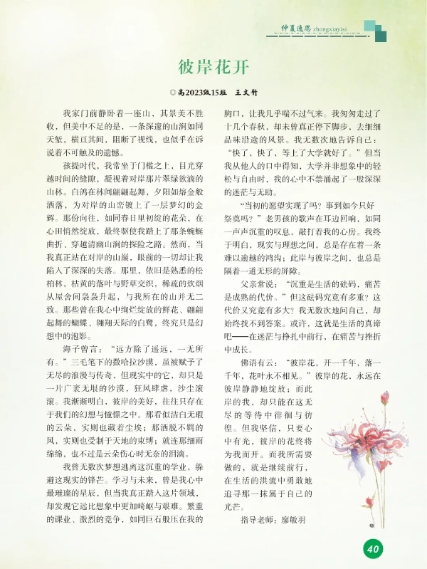 個(gè)人寄語:當(dāng)振翅的流光掠過心原,我看見文學(xué)在時(shí)光褶皺里播種的星芒,每一次破繭都是永不凋零的盛夏。