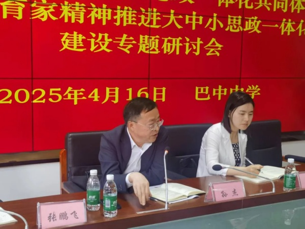 四川文理學(xué)院馬克思主義學(xué)院院長(zhǎng)孫杰教授對(duì)此次研討活動(dòng)作了指導(dǎo)發(fā)言,充分肯定了巴中市各學(xué)校在思政課一體化建設(shè)中所作出的積極探索,對(duì)各校創(chuàng)新實(shí)踐表示贊賞。同時(shí),他提出大中小思政課一體化建設(shè)要做到六個(gè)“一體化”,從課程體系、教學(xué)內(nèi)容、師資隊(duì)伍等多個(gè)方面為思政課一體化建設(shè)指明了更清晰的方向,為后續(xù)工作的開(kāi)展提供了重要指導(dǎo)。