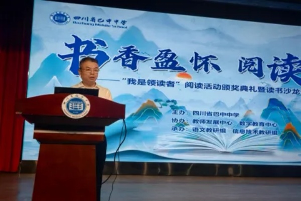 春灑細(xì)雨潤心田,書展星河啟智慧。數(shù)字時(shí)代與傳統(tǒng)文化碰撞下,為進(jìn)一步深化我校書香校園建設(shè),涵養(yǎng)學(xué)生良好的閱讀習(xí)慣,4月29日,巴中中學(xué)語文教研組聯(lián)合信息技術(shù)組在云屏校區(qū)樹人堂隆重舉行以“書香盈懷·閱讀致遠(yuǎn)——我是領(lǐng)讀者”為主題的閱讀頒獎(jiǎng)典禮暨讀書沙龍活動(dòng)。