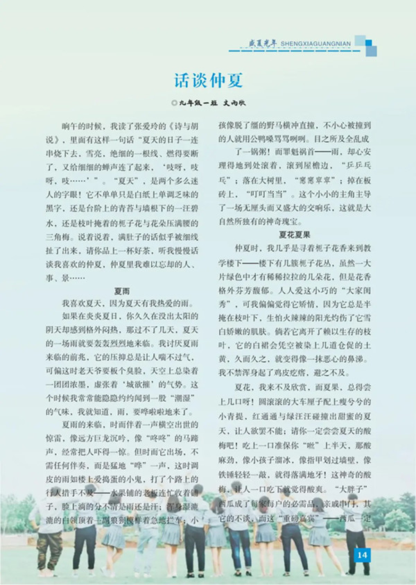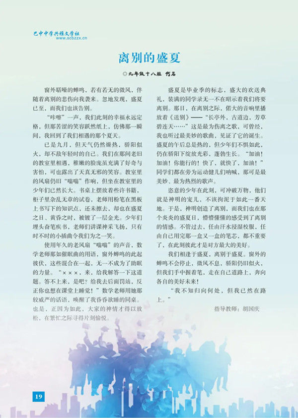 “綠樹陰濃夏日長,樓臺(tái)倒影入池塘”。春末夏初,料峭之寒已過,炎炎浮躁未至。游魚自池塘躍起,捻得一縷風(fēng)為夏天作序。五月,靜賞初夏郁郁蔥蔥,聽生命拔節(jié);歡慶勞動(dòng)者的汗水,頌勞動(dòng)之歌;歌頌少年最美青春,慶風(fēng)華正茂;回味母愛溫馨淳淳,感母愛恩情……在這初夏之際,讓我們攜一縷淺夏的芬芳,感受巴中中學(xué)學(xué)子的五月情思。
