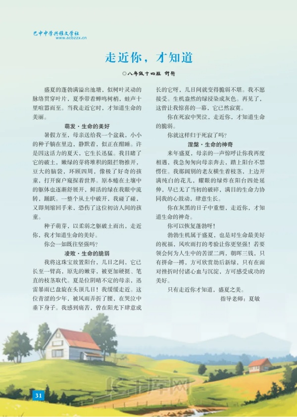 個人寄語:讓文字成為星火,點燃思想照亮遠方。愿你我以筆鋒丈量世界,讓每段篇章都沉淀為成長的印記,在時光書頁上鐫刻獨屬于自己的光芒。