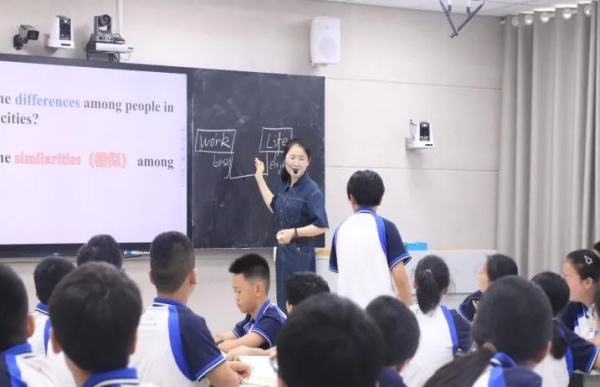 此次賽課,初一年級杜霏、李璟妍兩位老師,圍繞2024年人教版七年級下冊Unit5 Here and Now閱讀內容展開教學比拼。杜霏老師以趣味視頻引入,通過對比重慶、內羅畢、紐約三地生活場景,深入淺出地幫助學生感知文化差異;李璟妍老師則以這三座城市為教學支點,借助視頻腳本閱讀,巧妙串聯時區(qū)差異、生活實景與現在進行時語法教學,有效培養(yǎng)學生的跨文化理解能力 。