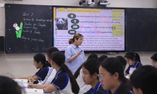 初二年級的呂嘉嘉老師與張伶俐老師,則聚焦人教版Go for it Unit7 "What’s the highest mountain in the world?"的閱讀板塊,帶來各具特色的教學展示。呂老師精心構建任務導向型讀寫課堂,以制作宣傳手冊為核心主線,巧妙運用猜謎語、頭腦風暴、網上研學等多元形式,教學脈絡清晰流暢、層層遞進。張老師以"大熊貓"為主題,打造多元能力培養(yǎng)課,她緊扣大熊貓話題,通過豐富的多媒體資源與多樣化教學手段,兼具知識性與趣味性,充分調動學生的積極性和參與度。