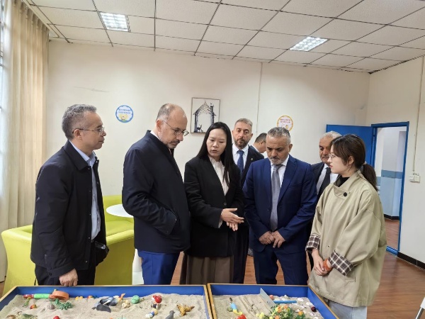 在心理咨詢室,毛里齊奧·拉塞羅詢問了我校的心理咨詢在預防青少年心理健康方面的開展情況,感嘆東方文明與西方哲理的深度融合。