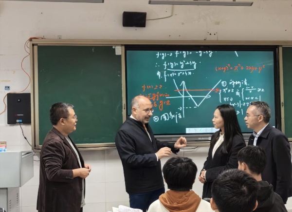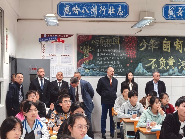 在樹德樓,意方代表團走進高一數(shù)學課堂,毛里齊奧·拉塞羅駐足聆聽后情不自禁地在電子白板上寫下數(shù)學公式,贏得同學們的陣陣掌聲。他指出,數(shù)學是全世界的通用語言,正是這種通用語言讓中、西方文化無障礙交流融合。毛里齊奧·拉塞羅的發(fā)言引發(fā)在場人員的共鳴,贏得大家的高度贊賞。