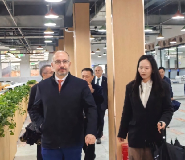在龍湖食堂,意方代表一行參觀并高度贊賞學校的明廚亮灶工程,并深度感受學校的煙火氣息與飲食文化。