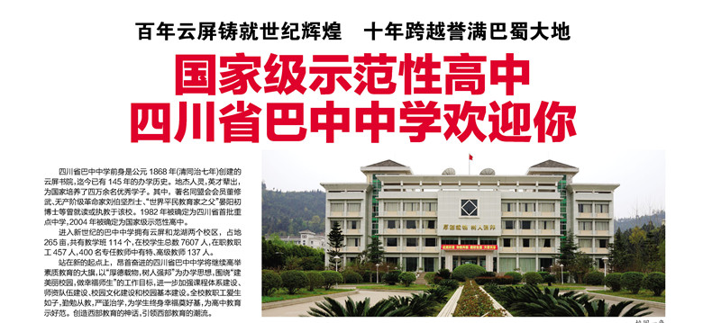 信息來(lái)源: 巴中中學(xué)招生辦公室 ‖ 發(fā)稿作者: ‖ 發(fā)布時(shí)間:2014年8月21日 ‖ 查看4279次 ‖