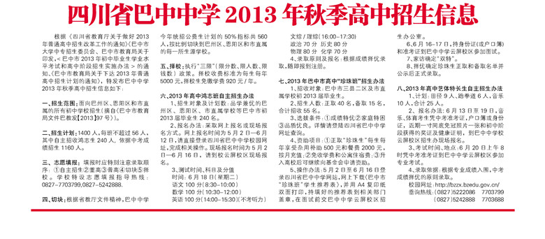 2013年巴中市普通高中“珍珠班”招生簡(jiǎn)章