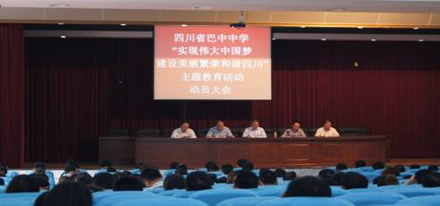 ▲2013年5月14日15:00,四川省巴中中學(xué)召開“實(shí)現(xiàn)偉大中國夢,建設(shè)美麗繁榮和諧四川”主題教育活動(dòng)動(dòng)員大會會場