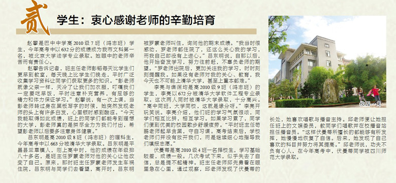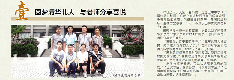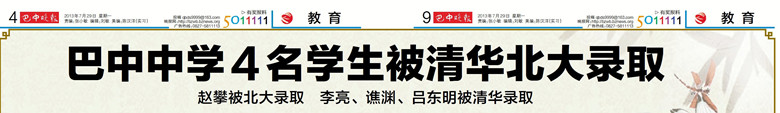 巴中中學(xué)4名學(xué)生被清華北大錄取