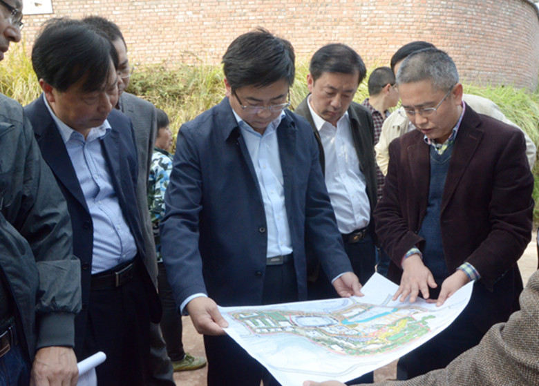 區(qū)委副書記、區(qū)長楊波對照規(guī)劃圖實地踏勘巴中中學龍湖校區(qū)周邊土地情況。