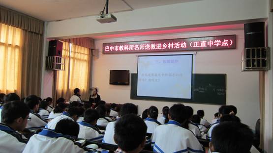 2014年3月26日上午,巴中市教科所名師送教進鄉(xiāng)村活動在南江縣正直中學舉行,我校初中部羅小玲老師帶去了八年級(下)語文第八課巴金的《短文兩篇》。羅老師利用多媒體將本課安排得聲情并茂,充分發(fā)揮老師的主導作用,帶動學生積極交流主動參與,以兩篇短文為載體,分別對學生進行了聽說讀寫的訓練,從夸父逐日、嫦娥奔月、飛蛾撲火的積極意義引導學生思考個人理想、民族大義、國家命運。