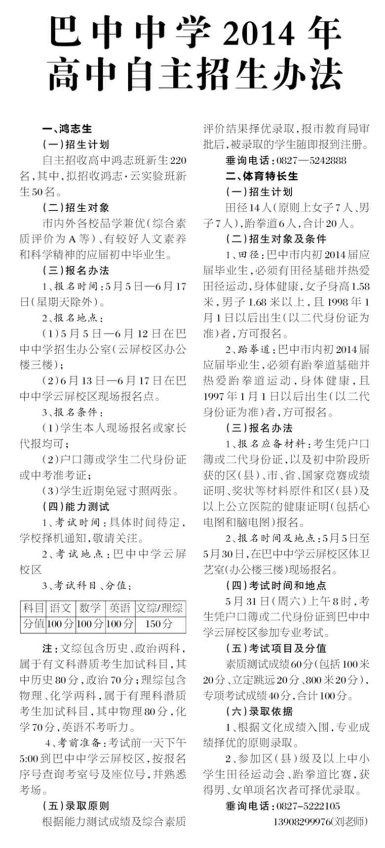 巴中中學(xué)專刊——2014年5月6日巴中新報報道