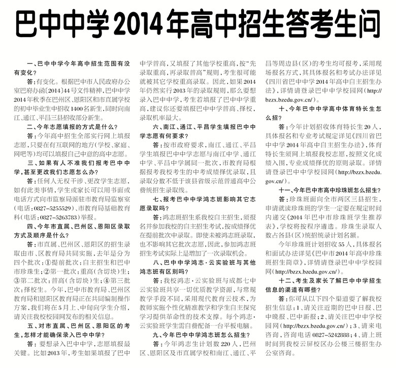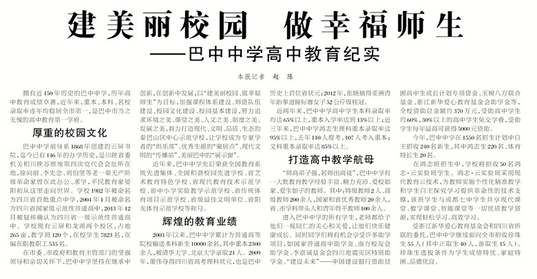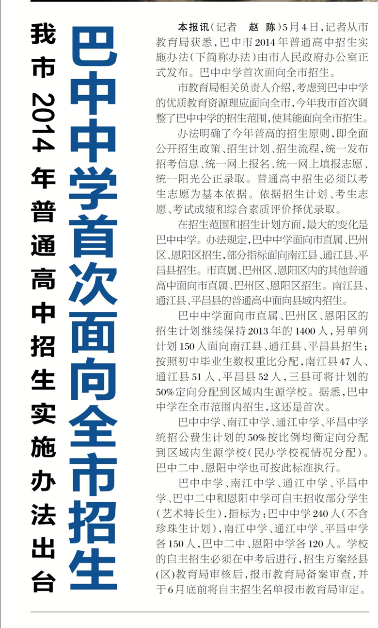 巴中中學(xué)?2014年5月5日巴中日報報道