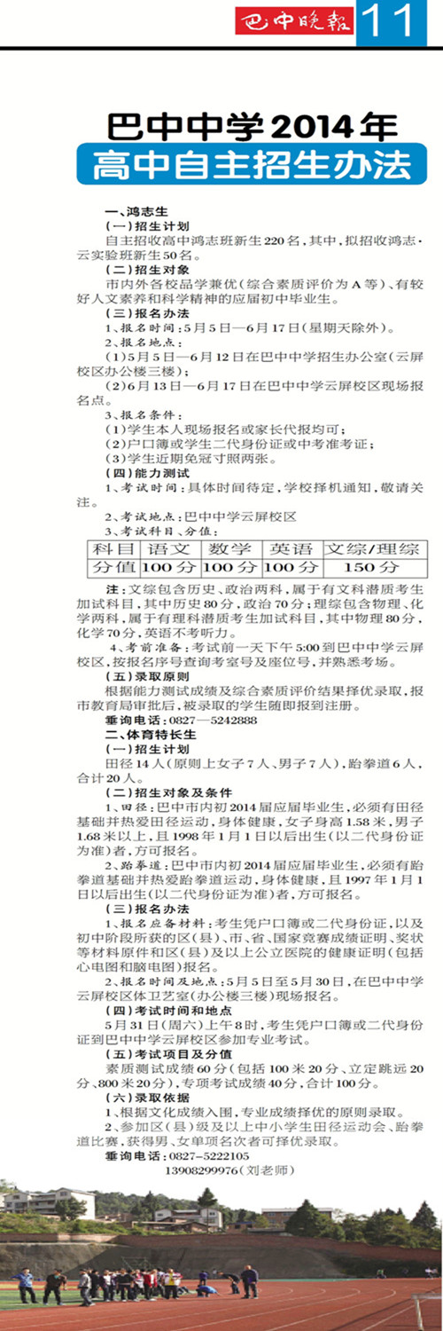 巴中中學(xué)專刊:2014年5月12日巴中晚報(bào)報(bào)道