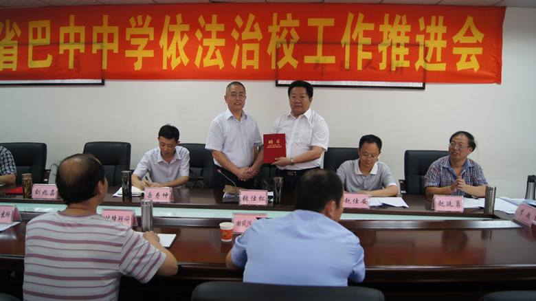 會(huì)上,學(xué)校副校長(zhǎng)彭中華宣讀了《四川省巴中中學(xué)關(guān)于聘請(qǐng)法制副校長(zhǎng)和法律顧問的通知》;學(xué)校黨委書記、校長(zhǎng)、依法治校領(lǐng)導(dǎo)小組組長(zhǎng)劉兆嘉向受聘者頒發(fā)了聘書;學(xué)校黨委副書記趙廷勇宣讀了《四川省巴中中學(xué)關(guān)于成立依法治校工作領(lǐng)導(dǎo)小組的決定》;學(xué)校黨委副書記、依法治校領(lǐng)導(dǎo)小組副組長(zhǎng)馬松濤宣讀了《四川省巴中中學(xué)依法治校實(shí)施方案》并就相關(guān)工作作了安排;學(xué)校安保處主任楊煜就依法治校工作實(shí)施細(xì)則作任務(wù)分解和說明。學(xué)校法制副校長(zhǎng)——巴中市公安局黨委委員、副局長(zhǎng)張仕松和學(xué)校常年法律顧問——四川玉宏律師事務(wù)所主任、高級(jí)律師吳玉川相繼發(fā)言,表示一定配合學(xué)校做好法制教育相關(guān)講座和法律咨詢服務(wù),為竭力打造安全和諧穩(wěn)定的校園環(huán)境提供法律幫助。