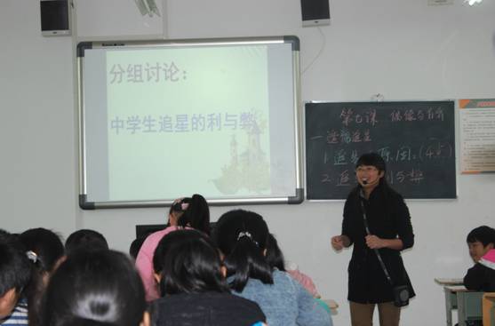 本次共送課三堂,由唐敬雄老師上八年級(jí)語文上冊(cè)《老王》一課,李淑銀老師上八年級(jí)政治《透視追星》一課,楊勇老師上八年級(jí)英語第四單元。語文和政治兩堂課都采用了現(xiàn)代教育技術(shù),配合現(xiàn)在新課改精神,在課堂上與學(xué)生多方互動(dòng),收到了較好的效果。觀音井中心小學(xué)同時(shí)也安排了一堂語文課和一堂物理課,是由今年剛參加工作的年輕老師上臺(tái)展示。