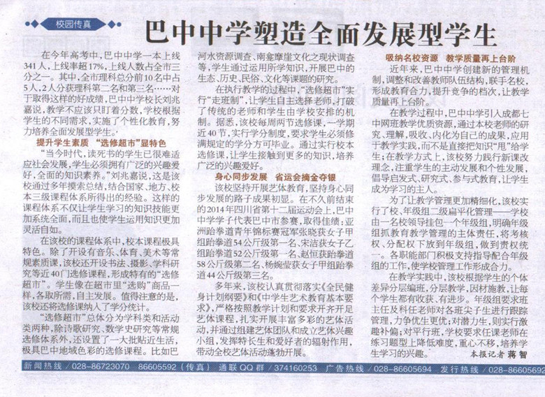巴中中學(xué)塑造全面發(fā)展型學(xué)生