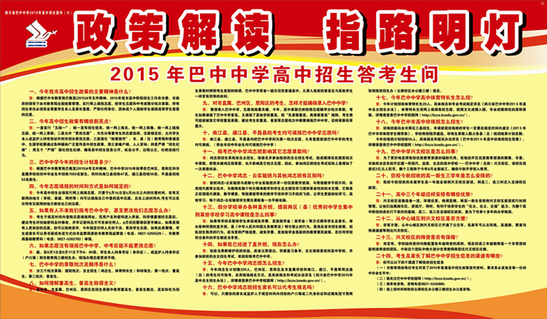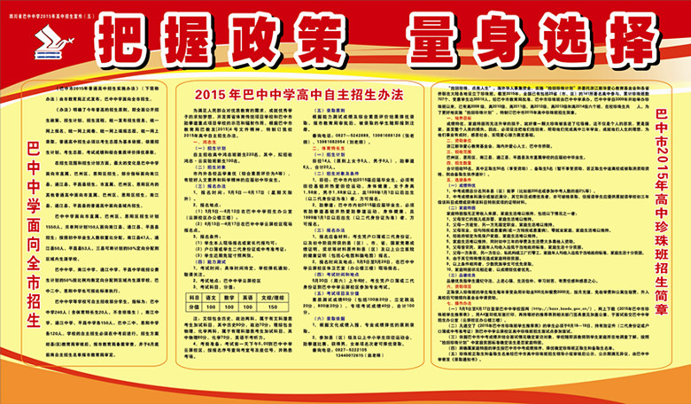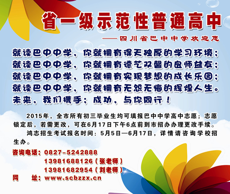四川省巴中中學(xué)2015年高中招生系列政策已經(jīng)出臺(tái),請(qǐng)大家高度關(guān)注下列招生信息。