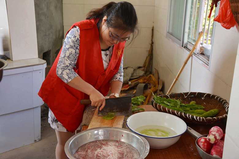 到達(dá)敬老院后,志愿者們幫助老人們洗菜切菜,打掃室內(nèi)外清潔衛(wèi)生,然后請(qǐng)出老人們圍坐在院子里唱歌游戲并與他們拉家常談心。游戲擊鼓傳花將老人們的熱情帶動(dòng)起來,他們主動(dòng)要求演唱革命老歌,同時(shí)也有幾位老人講起了他們?cè)趹?zhàn)爭(zhēng)年代的一些故事。志愿者們聽的很認(rèn)真,都感嘆現(xiàn)在確實(shí)生活好了,以后要經(jīng)常參加這種活動(dòng),將中華民族愛老敬老的傳統(tǒng)美德傳承下去。