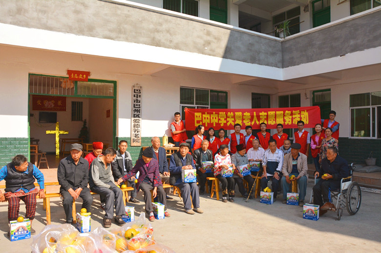 歲歲重陽,今又重陽。為充分發(fā)揮青年和志愿者在傳播文明、弘揚(yáng)新風(fēng)中的先鋒模范作用,樹立尊老敬老的新風(fēng),切實(shí)為老年人排憂解難,做到愛老、敬老、為老,在社會(huì)上營(yíng)造溫馨和諧、健康文明的氛圍。10月21號(hào)上午,在校團(tuán)委何靜書記的組織和帶領(lǐng)下,我校鄧智峰等12名青年教師攜帶水果、牛奶到巴州區(qū)愛德養(yǎng)老院看望老人。