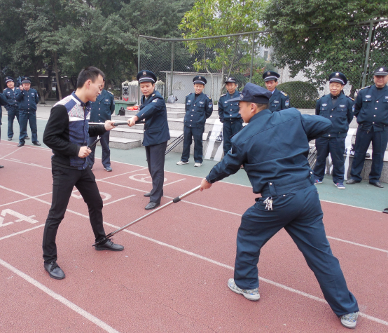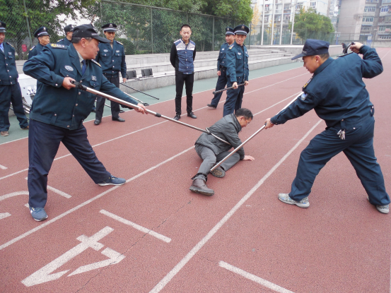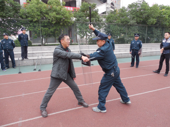 演練中,安保人員主要對盾牌、鋼叉、腳叉、防刺背心、防割手套、橡膠棍等防爆器材的使用進行了全面練習。通過本次演練,大大提高了我校保安人員處置突發(fā)事件的應變能力。
