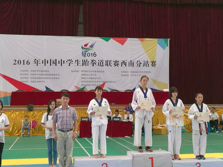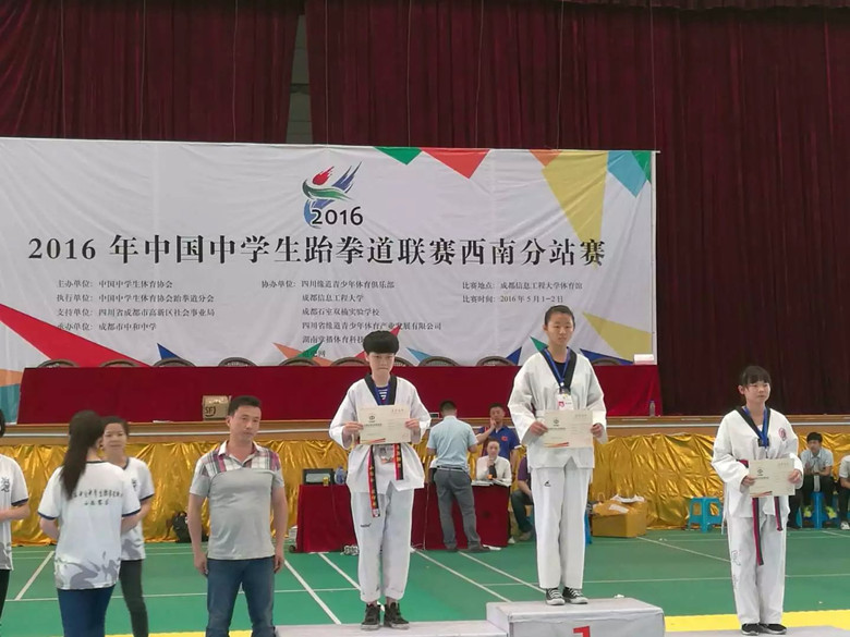 由中國(guó)中學(xué)生體育協(xié)會(huì)跆拳道分會(huì)主辦的2016年中國(guó)中學(xué)生跆拳道錦標(biāo)賽(西南賽區(qū))于2016年5月2日下午在成都信息工程大學(xué)體育館圓滿落幕,四川省巴中中學(xué)跆拳道代表隊(duì)勇奪3金、1銀、3銅。