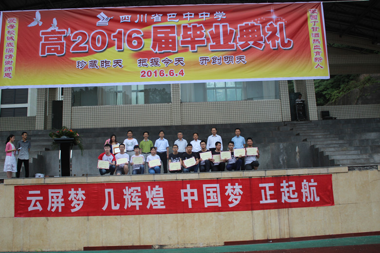 畢業(yè)典禮在雄壯嘹亮的國(guó)歌聲中拉開帷幕。副校長(zhǎng)彭中華宣讀了關(guān)于高2016屆學(xué)生準(zhǔn)予畢業(yè)的決定,并為畢業(yè)生代表頒發(fā)畢業(yè)證書;副校長(zhǎng)王成文宣讀了關(guān)于高2016屆省“三好”學(xué)生、優(yōu)秀學(xué)生干部、優(yōu)秀學(xué)生、先進(jìn)班集體的表彰決定并頒發(fā)證書;校黨委副書記馬松濤宣讀了關(guān)于高2016屆優(yōu)秀團(tuán)員、優(yōu)秀團(tuán)員干部、優(yōu)秀志愿者的表彰決定并頒發(fā)證書。畢業(yè)班學(xué)生代表、教師代表及學(xué)生家長(zhǎng)代表先后在會(huì)上發(fā)言。