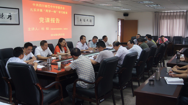 6月27日,市教育局黨委委員、副局長(zhǎng)杜標(biāo)同志深入我校作了題為“深入開(kāi)展‘兩學(xué)一做’,進(jìn)一步提升巴中中學(xué)示范水平”的黨課報(bào)告。校黨委書記、校長(zhǎng)劉兆嘉同志主持會(huì)議,學(xué)校黨員干部、支部成員、黨員代表聆聽(tīng)黨課報(bào)告。