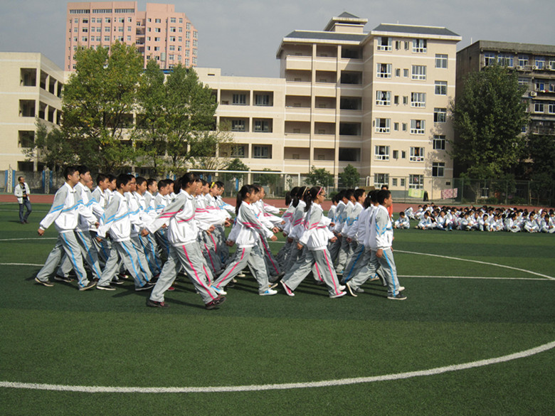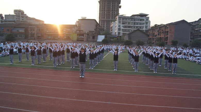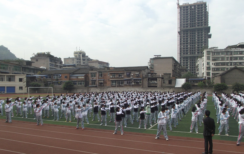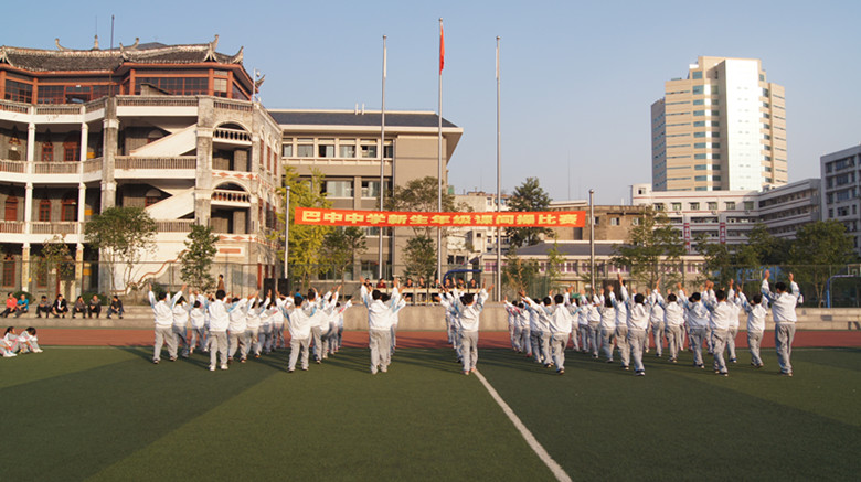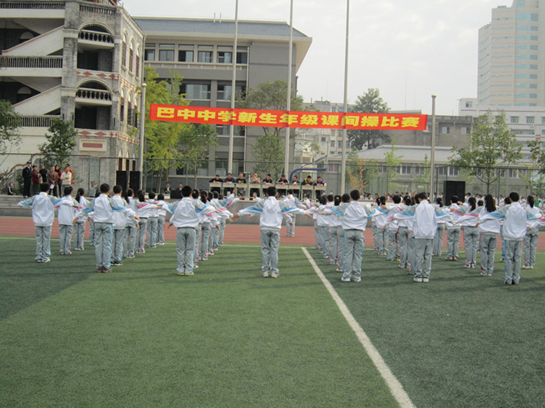2012年11月1日,巴中中學(xué)校本部運(yùn)動(dòng)場(chǎng)循環(huán)不斷地響奏著第八套中學(xué)生廣播體操韻律,學(xué)校初2012級(jí)新生、高2012級(jí)新生正分組開展課間操比賽活動(dòng)。