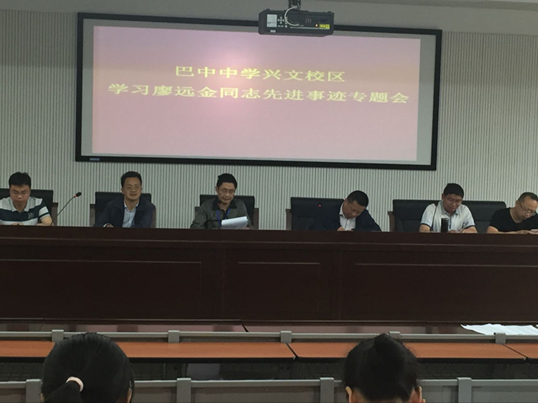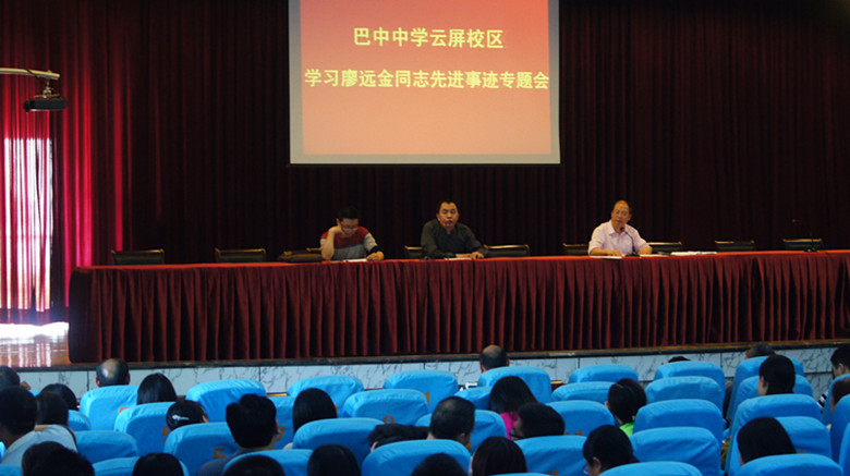 根據(jù)巴教黨委【2017】33號文件《關于開展向廖遠金學習的通知》的精神,近日,我校開展了學習巴中市師德楷模廖遠金的活動。我校三個校區(qū)分別于5月5日、5月11日、5月12日由各校區(qū)負責人王成文校長、李均主任、趙廷勇書記等牽頭,利用半期考試成績分析會,組織各年級部老師參加了學習師德楷模廖遠金的會議。會議上,各校區(qū)負責人講述了廖遠金老師的先進事跡,詮釋了師德大愛。廖遠金老師獻身教育、愛崗敬業(yè)、無私奉獻的精神,無不讓老師們動容。